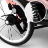 - Un système de rangement astucieux de la barre de traction du vélo ou des roues pivotantes permettant de passer d’un mode à l’autre facilement.